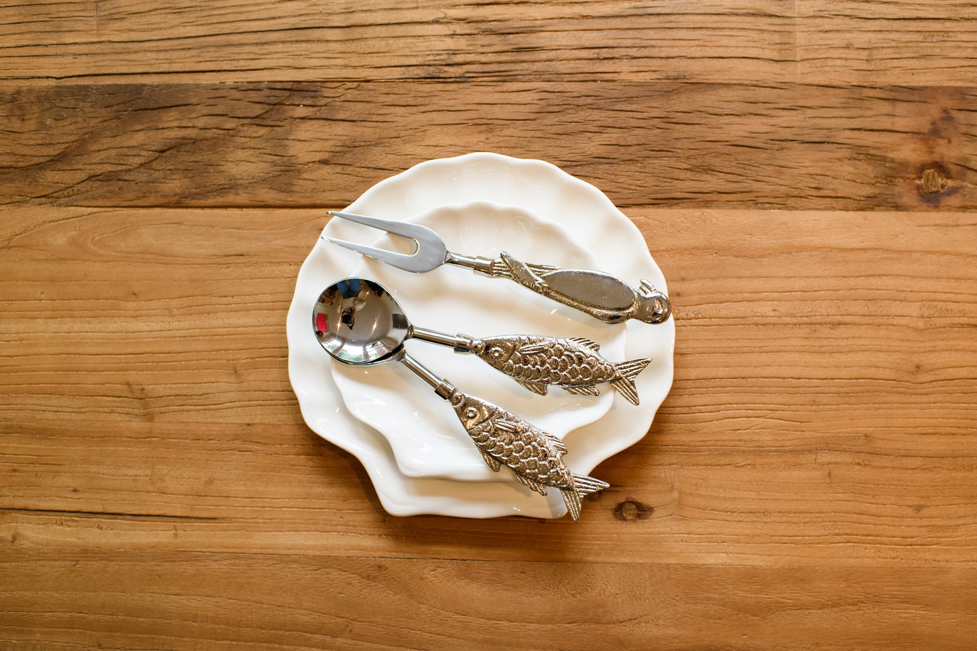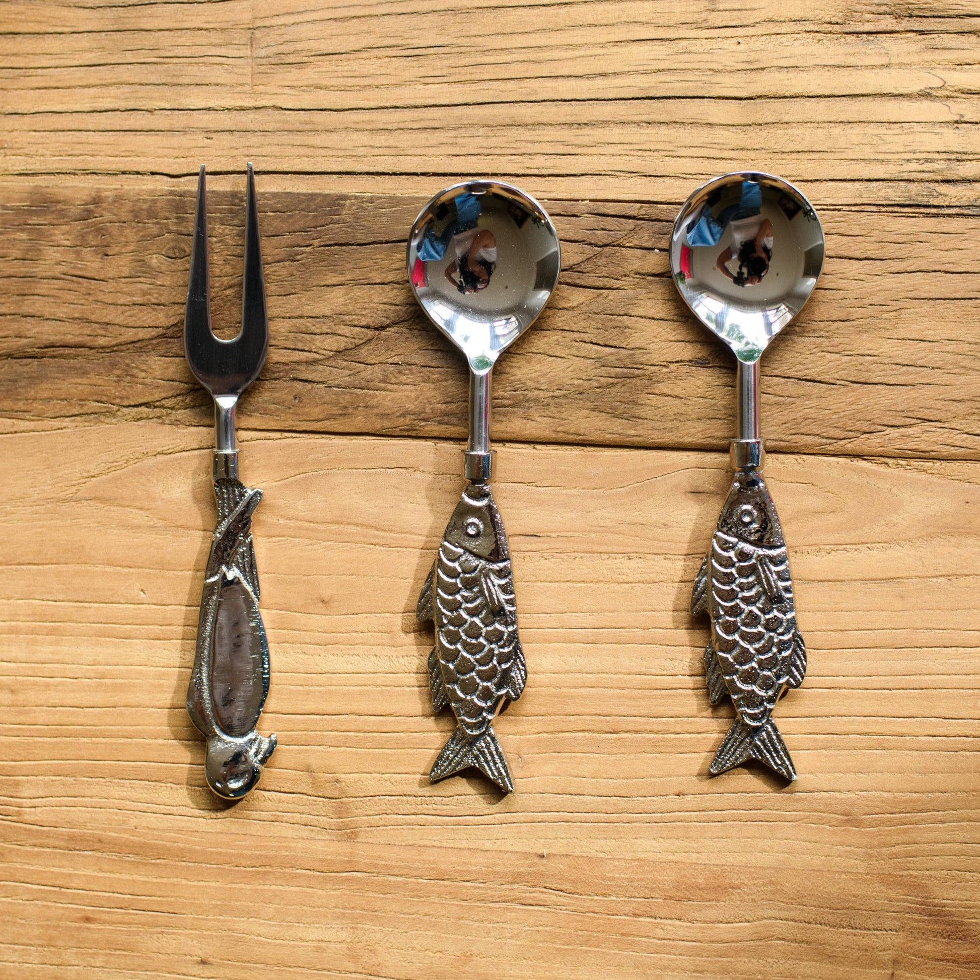 - Sold as a set of 3 including 2 Fish Spoons and Bird Fork