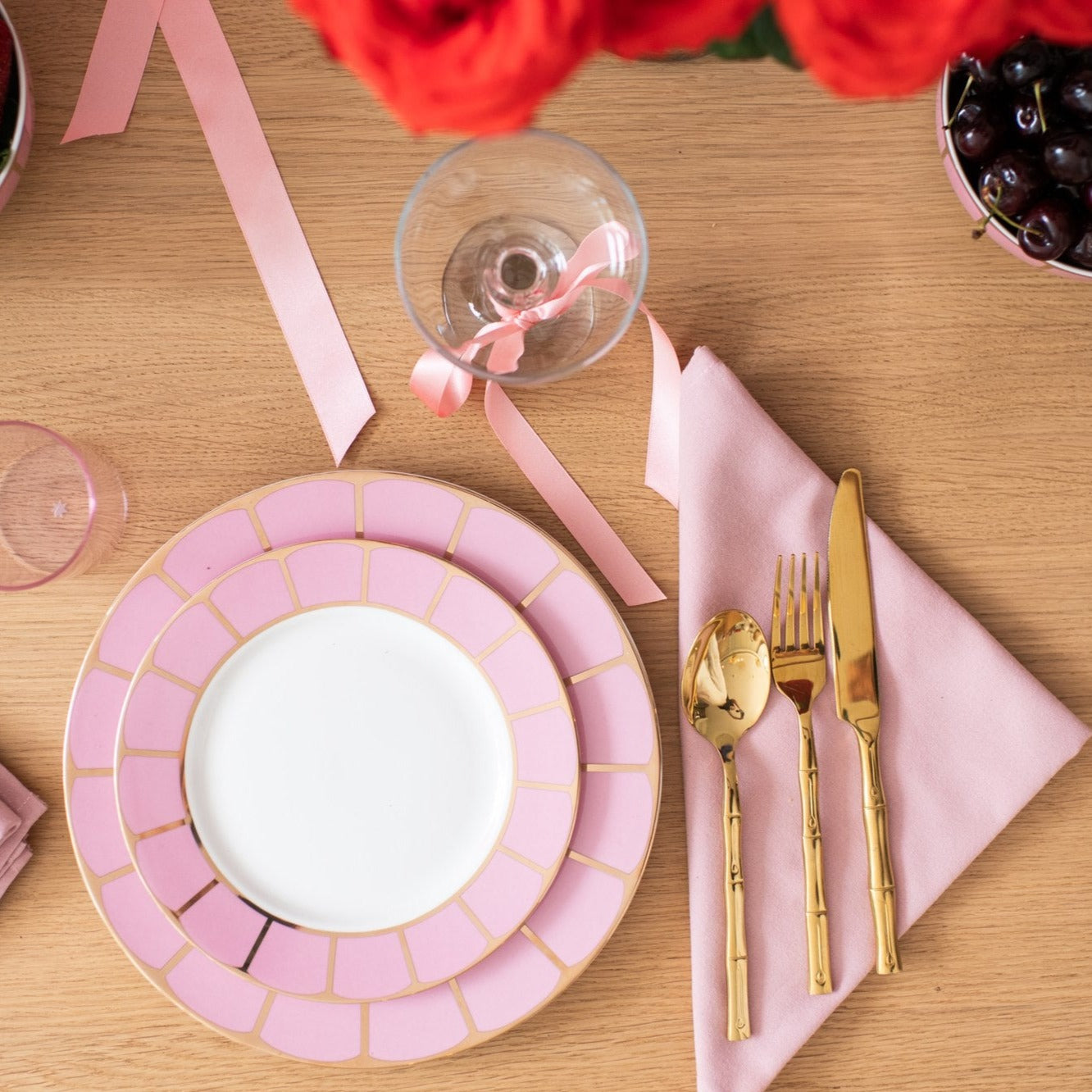 This chic cutlery set is one of our most popular styles and pairs perfectly with all our dinner sets. Our Bamboo cutlery set is gold plated and sealed to be dishwasher safe.