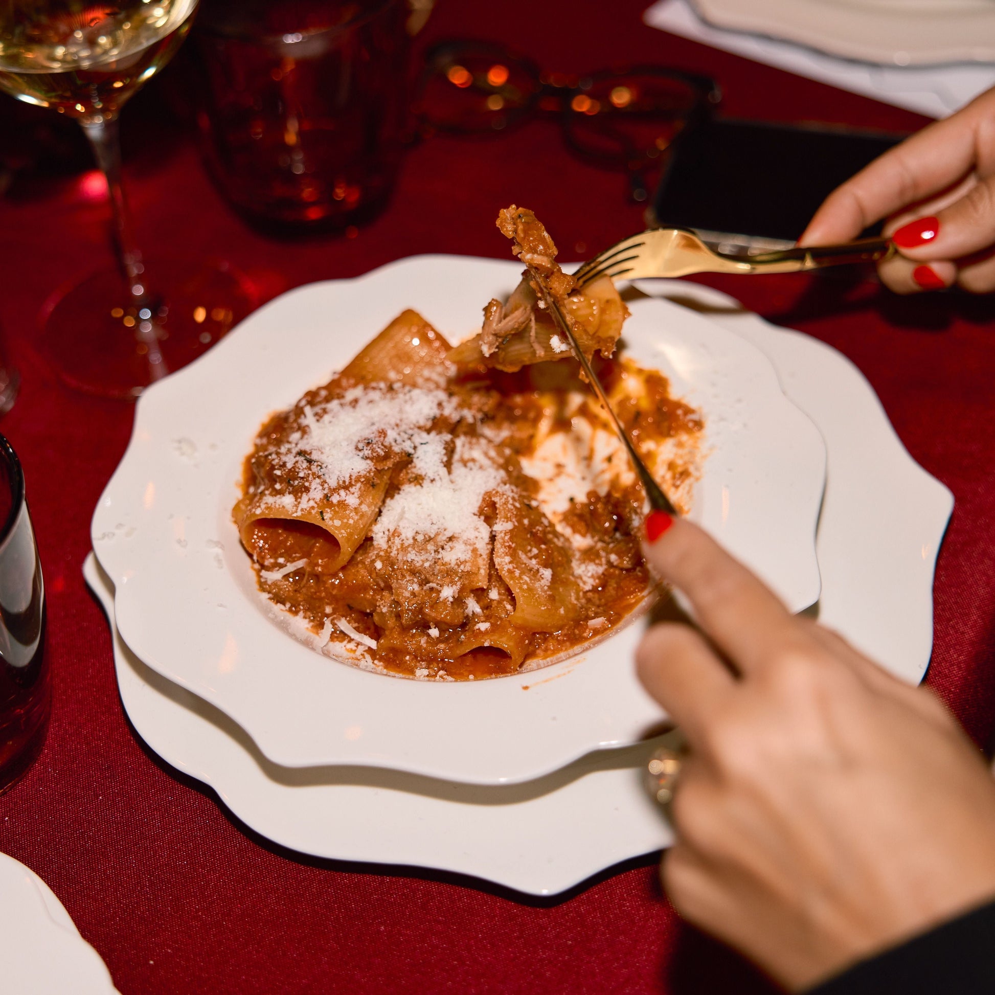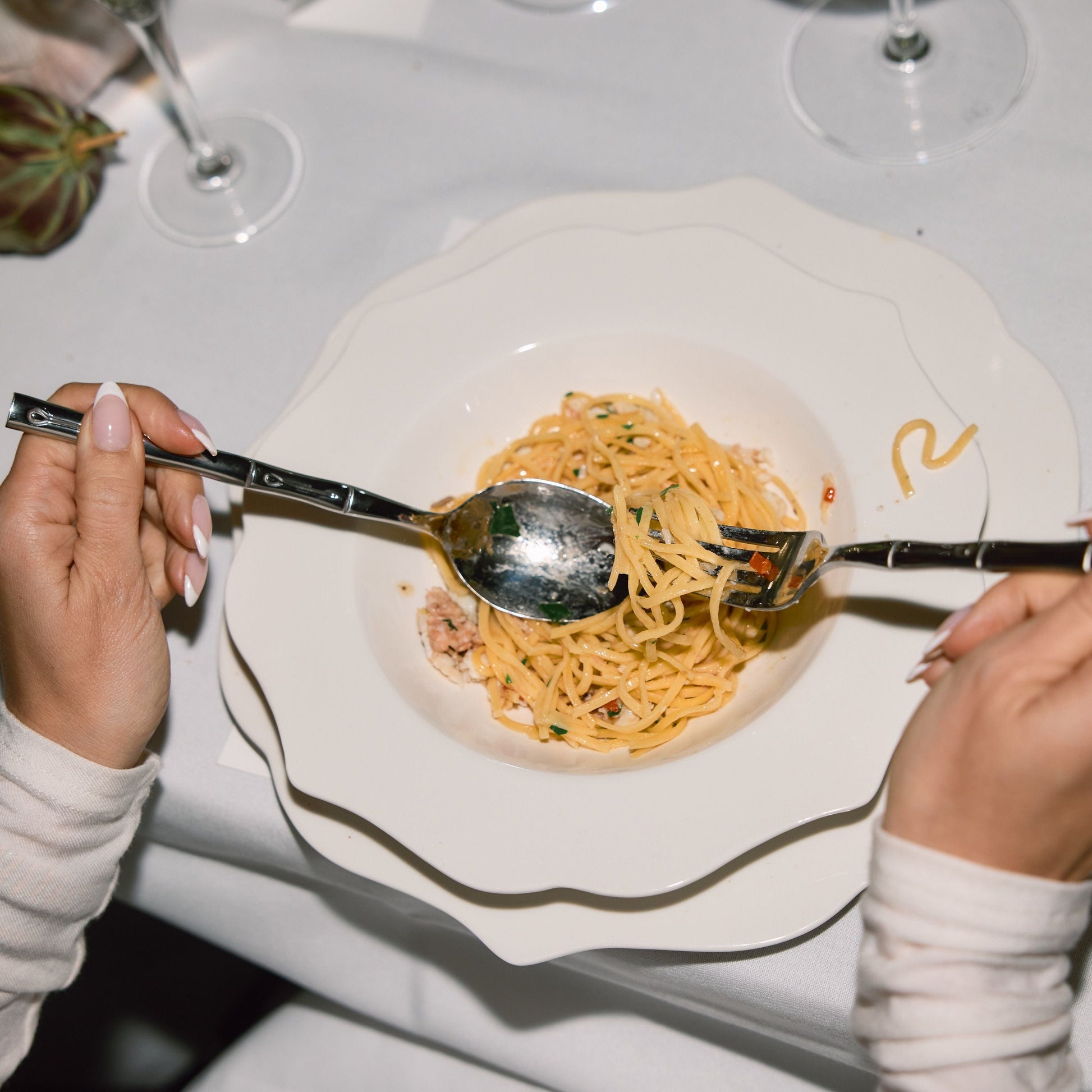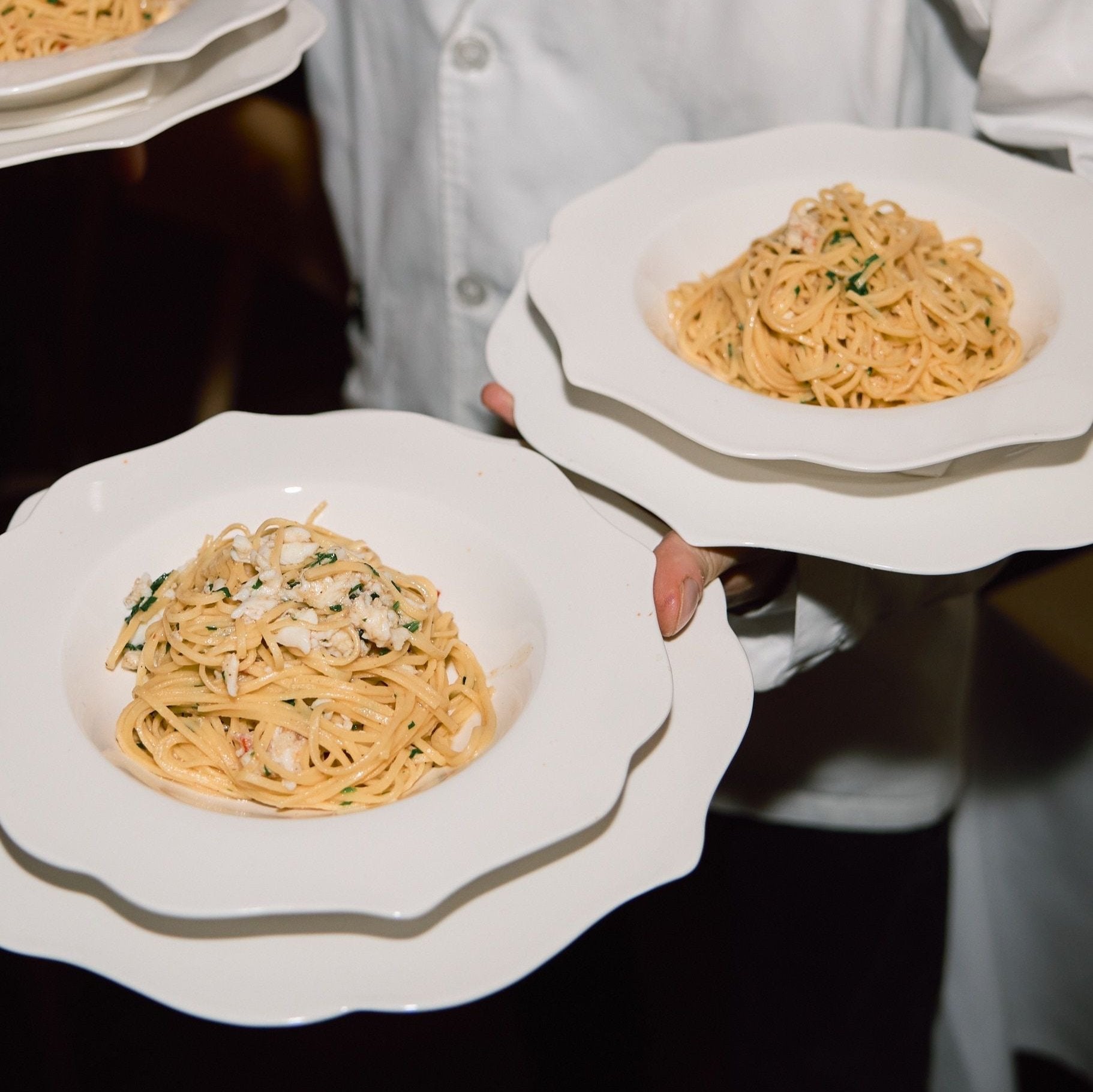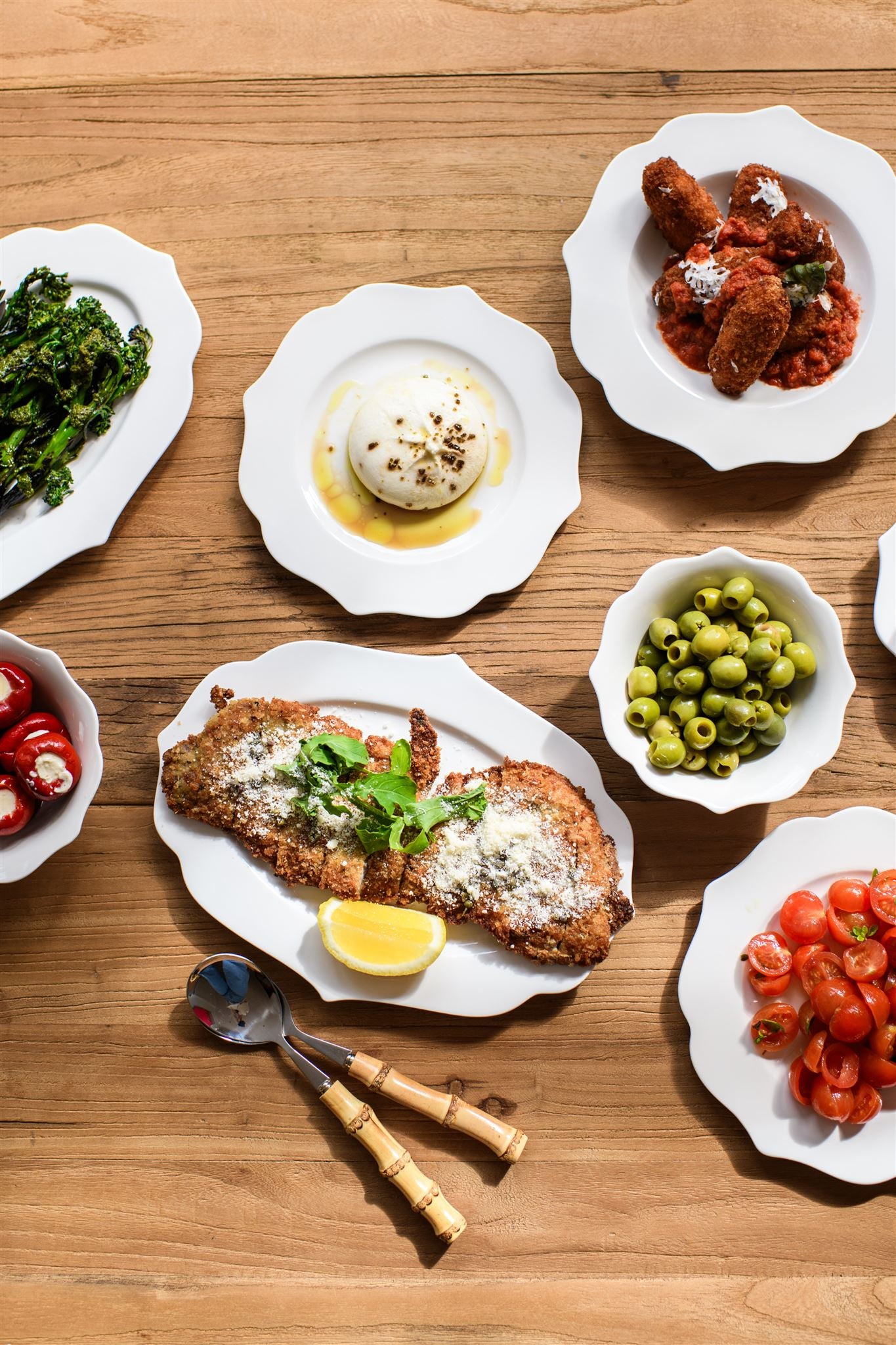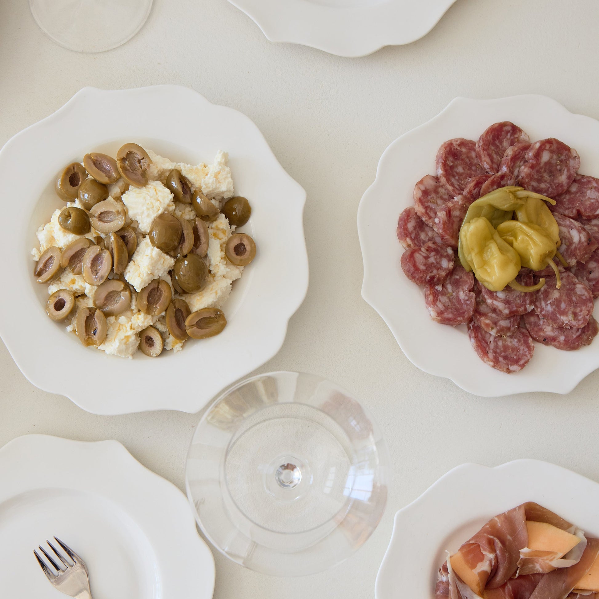 The Visconti Pasta Bowl is 9 inches wide, and part of the Visconti Dinner Set sold as a two-piece set, with dinner plate and side plate and individually and has a Pasta and Gelato bowl to match. The Visconti dinner plates come in 2 sizes (26.5cm & 24.5cm), a Large Dinner Plate and Side Plate.